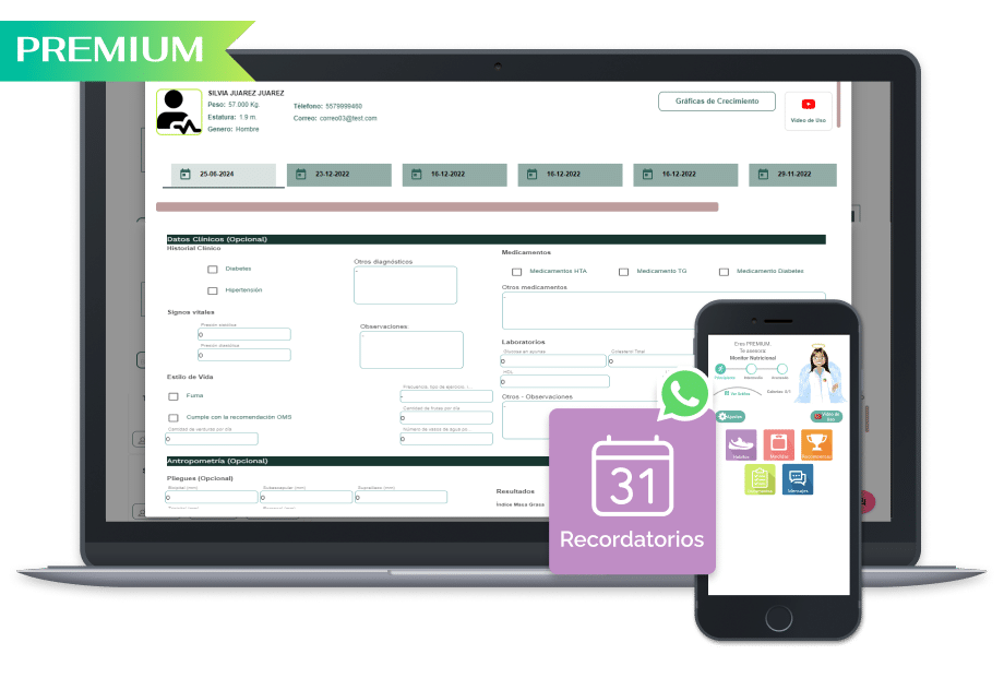 ¡App para teléfono gratis para todos tus pacientes! Ven sus documentos y gráficas de progreso, alertas diarias de hábitos, chat, recordatorios, pagos, citas