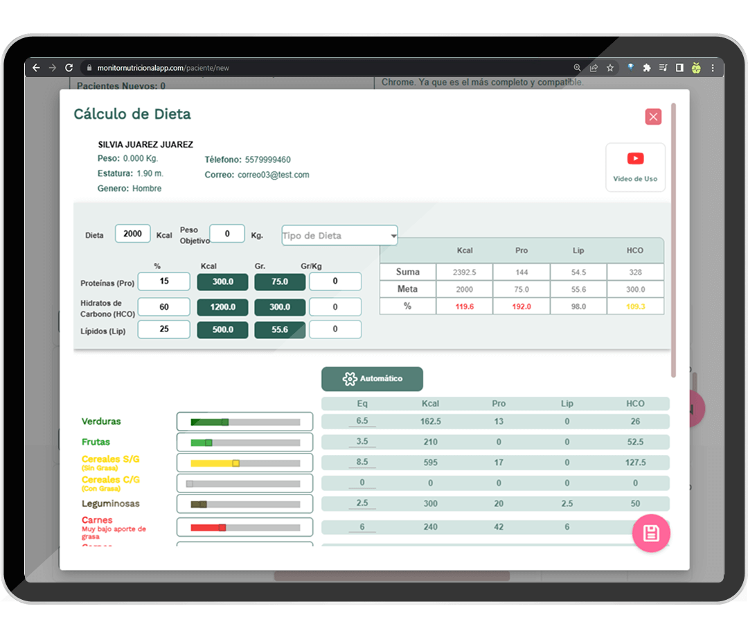 Dietocálculo, macronutrientes y equivalentes automáticos