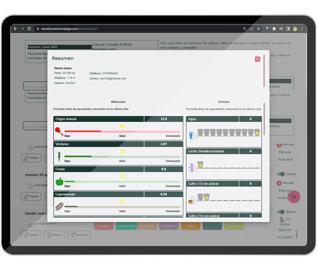 Mejora tus consultas y mantén a tus pacientes satisfechos utilizando las funcionalidades del software para nutriólogos que Monitor Nutricional tiene para ti.